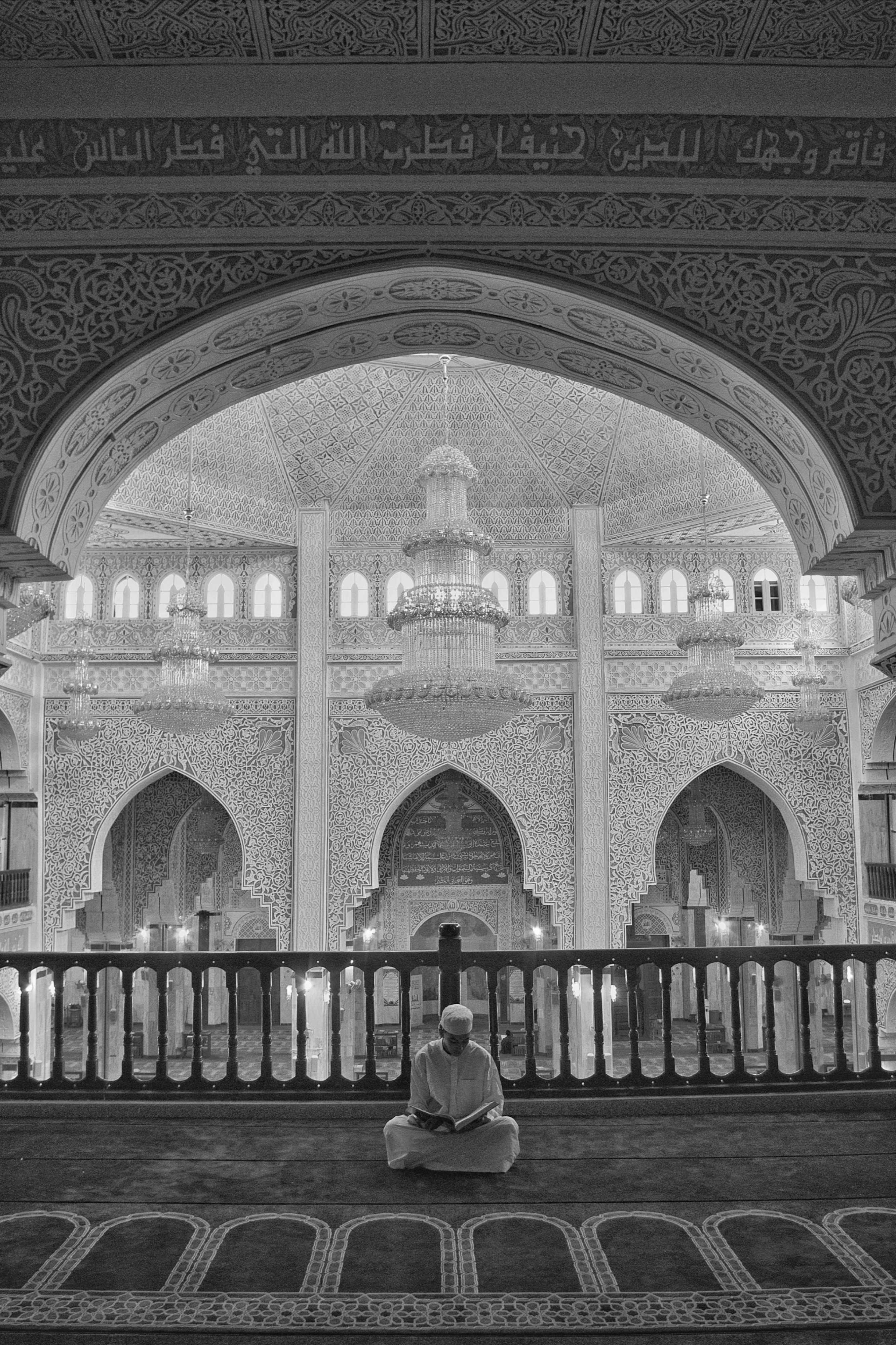 طائرة من الخطوط القطرية تمر تحت القمر بطور الاحدب المتناقص في البصرة جنوب العراق