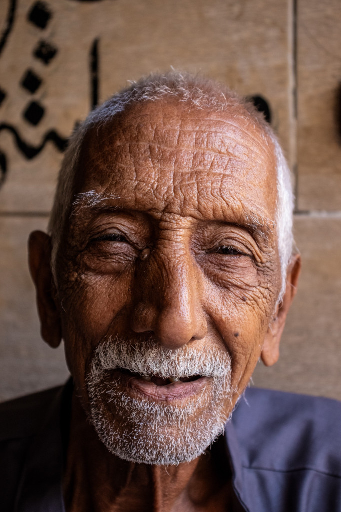 رجل مسن، تبدو ملامح الكبر على وجه...