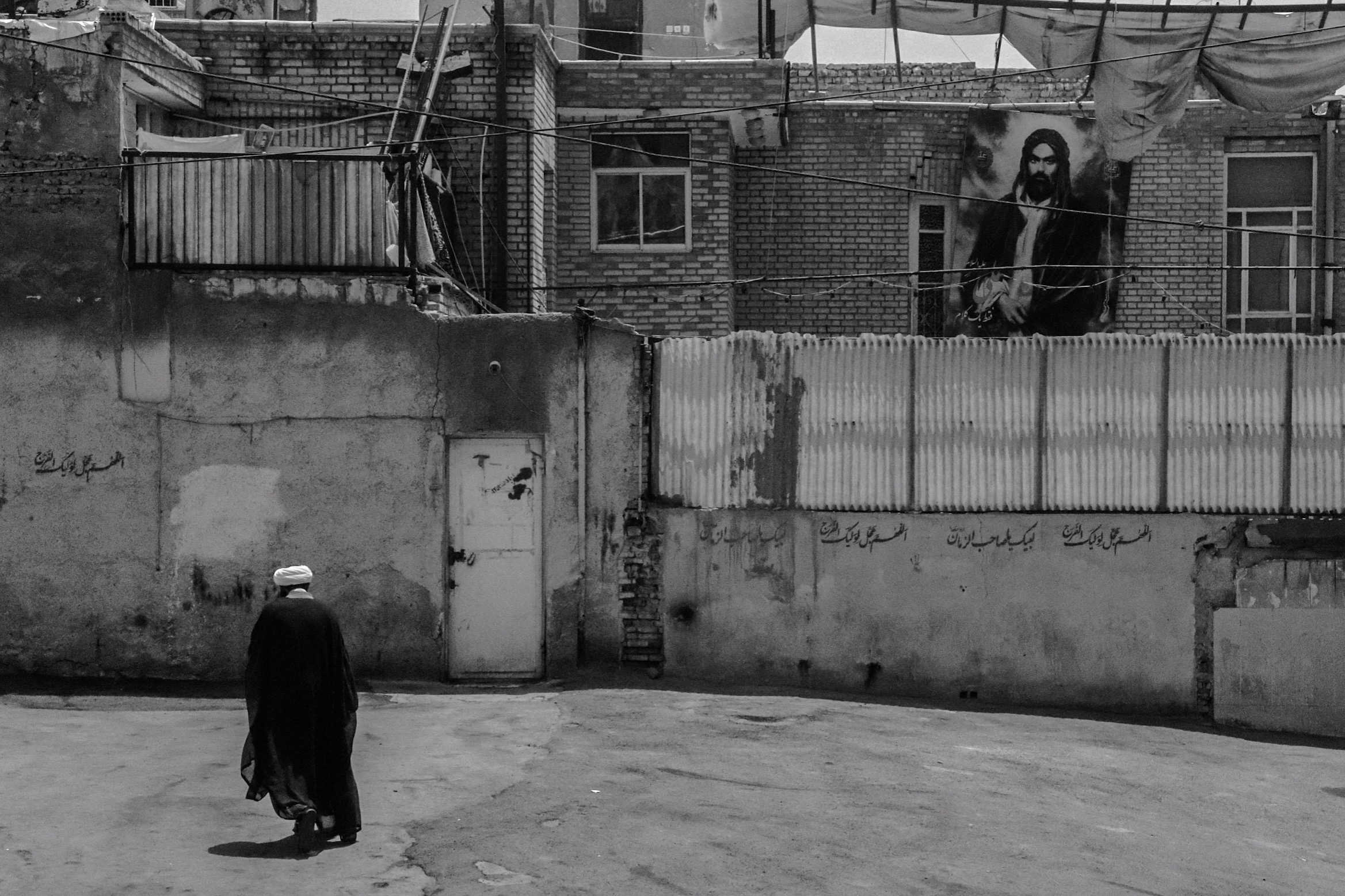 “بين عمامة المارّ وصورة الإمام علي على الجدار، حوار صامت يروي خلود الرسالة.”